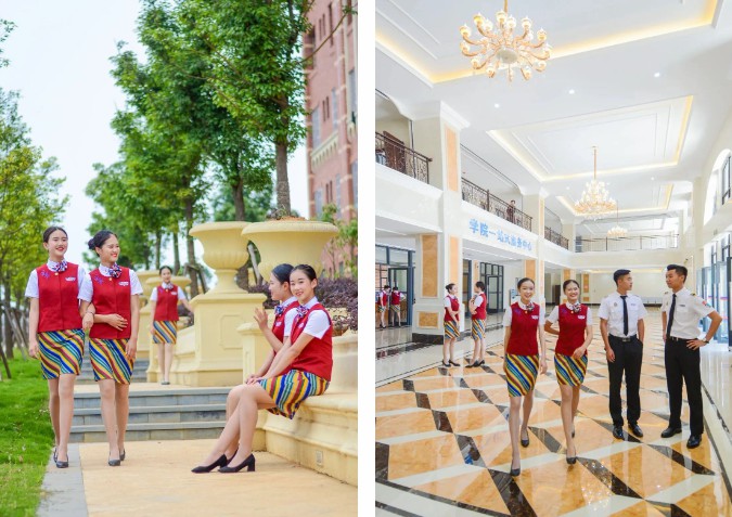 学院打造全国领先的全套实训设备及实训室,包括:波音737-700型实体飞机一架、直升机、空客A320动态模拟舱、水上撤离舱、灭火训练舱、翼上出口训练器、航空操作舱、1:1机场候机厅、VIP接待实训中心等,达到了民航专业级的空乘人员岗前培训、在职乘务员复训、实训操作的场地及设备标准。并通过中国民航科学研究院评估、验收合格,获得局方认可资质,可正式对外承接航空相关岗前培训任务。