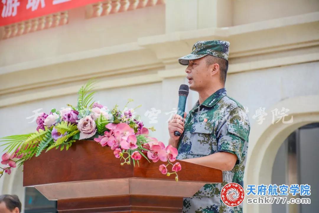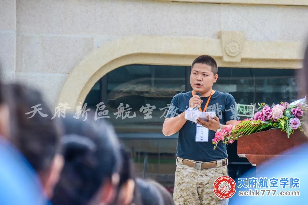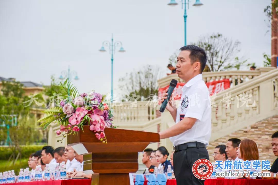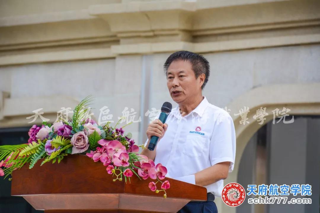 接着,辜英智总督学在动员大会上发表重要讲话。总督学介绍了学院发展历程及目前规模;还介绍了学院的管理、以及经验丰富的教师团队;一流的办学条件,为同学们的学习成才提供了保障;阐释了学院校训"厚德、求实、创新、尚美"的含义;十二年民航教育经验,与各大航空公司、旅行社等大型用人单位建立了良好的合作关系,为同学们打通就业渠道,实现同学们"翱翔蓝天、服务民航"的美好梦想。