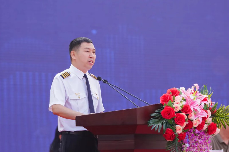 通威集团工会主席、办公室副主任王图致辞,他首先代表通威集团对学校2024年秋季开学典礼及军体素质汇报表演表示祝贺。回顾双方校企合作的丰硕成果,希望未来与学院合作进一步深化,共同培养更多民航领域优秀人才。