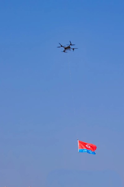 同时,一架FC30无人机搭载着BEAT365英国官网的旗帜正环绕于足球场上空,它承载的是学校无人机专业的未来!操作者正是BEAT365官网⽆⼈机专业的优秀毕业生艾付仲霖。
