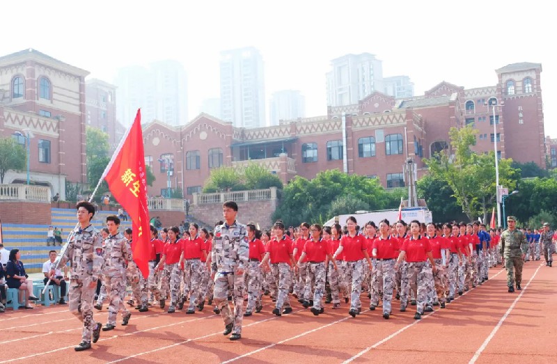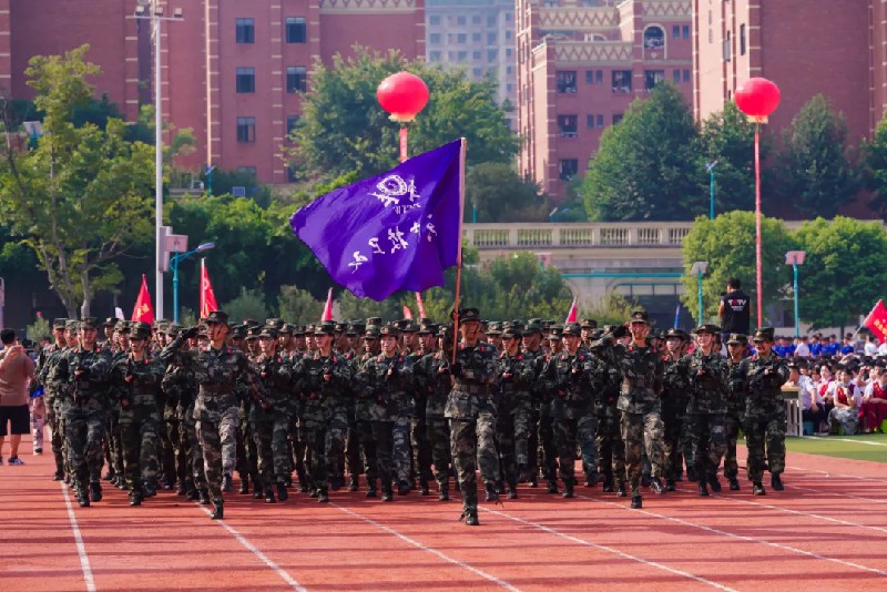 学生们以标准的分列式和整齐的步伐,展现了严格训练下的优秀纪律和顽强意志,赢得了全场热烈掌声。