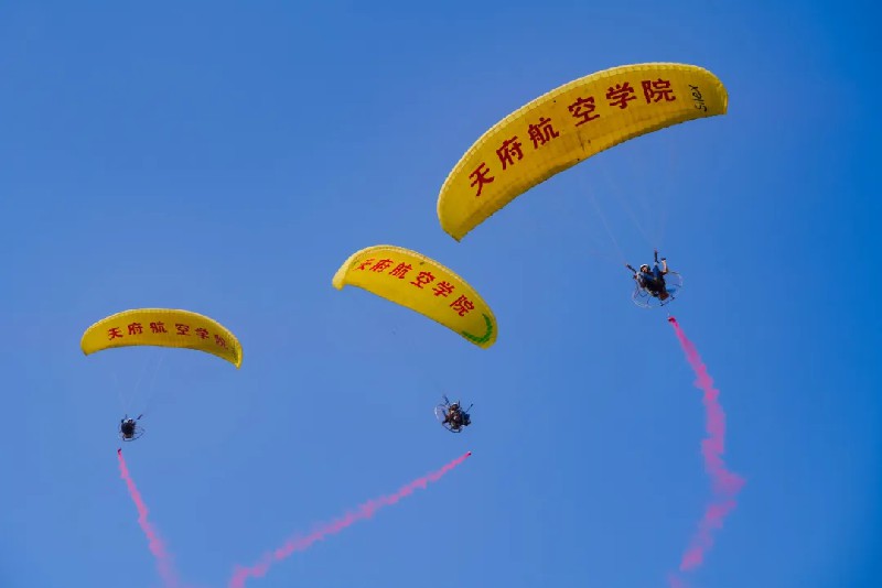 压轴的滑翔伞表演掀起活动高潮,滑翔伞手在天空中自由翱翔,象征着飞行梦想与未来的无限可能。