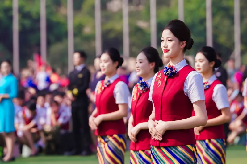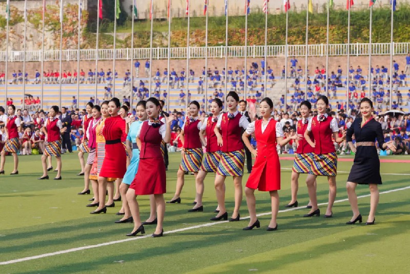 在航空服务行业,礼仪不仅是规范,更是专业与文化的象征,尽显优雅与风采。本次礼仪展示中,同学们穿上了中国国际航空股份有限公司、西藏航空有限公司、成都航空有限公司等九个航司的航空制服。办学多年,历届天航学子早已散布各大航司,她们的身影是学校办学成果的最好体现。