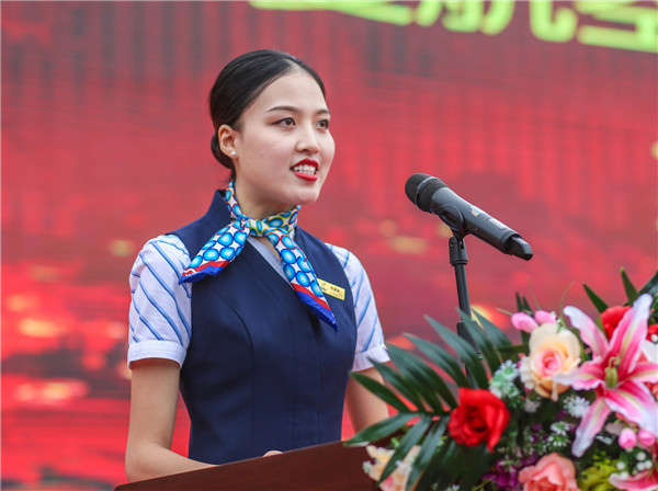 华夏航空乘务长刘清翠在发言中说,就业以后一直思念学院,今天回到校园看到学弟学妹们,便想起了当初单纯的自己。请学弟学妹们放心,天航永远是天航学子温暖的家,在生活、学习中天航会一直无微不至的关怀着你们,大学是人生的全新体验,是生命中最珍贵的回忆,愿学弟学妹们努力学习,实现蓝天梦!