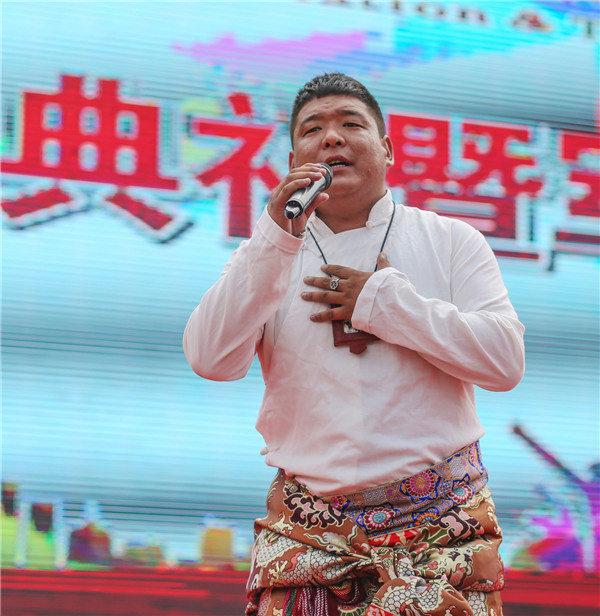 藏族男歌手带来民族歌曲《卓玛》《向往神鹰》,歌声悠扬,让人仿佛身置辽阔的大草原。
