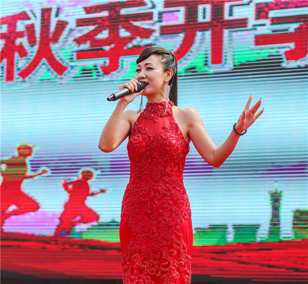 在祖国70华诞到来之际,把祝福化成歌声,女歌手带来了歌曲《好日子》《我的祖国》,让体育场成为祝福和欢乐的海洋。